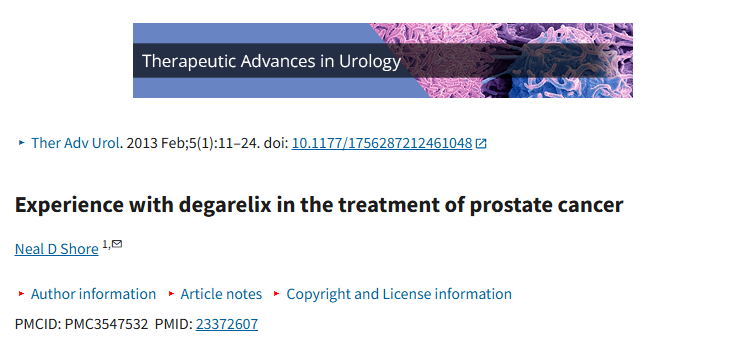 La eficacia deDegarelix se ha establecido rigurosamente en ensayos clínicos de fase III, en particular un gran estudio aleatorizado y abierto que lo comparó con el agonista de GnRH leuprolida en más de 600 pacientes con cáncer de próstata.
